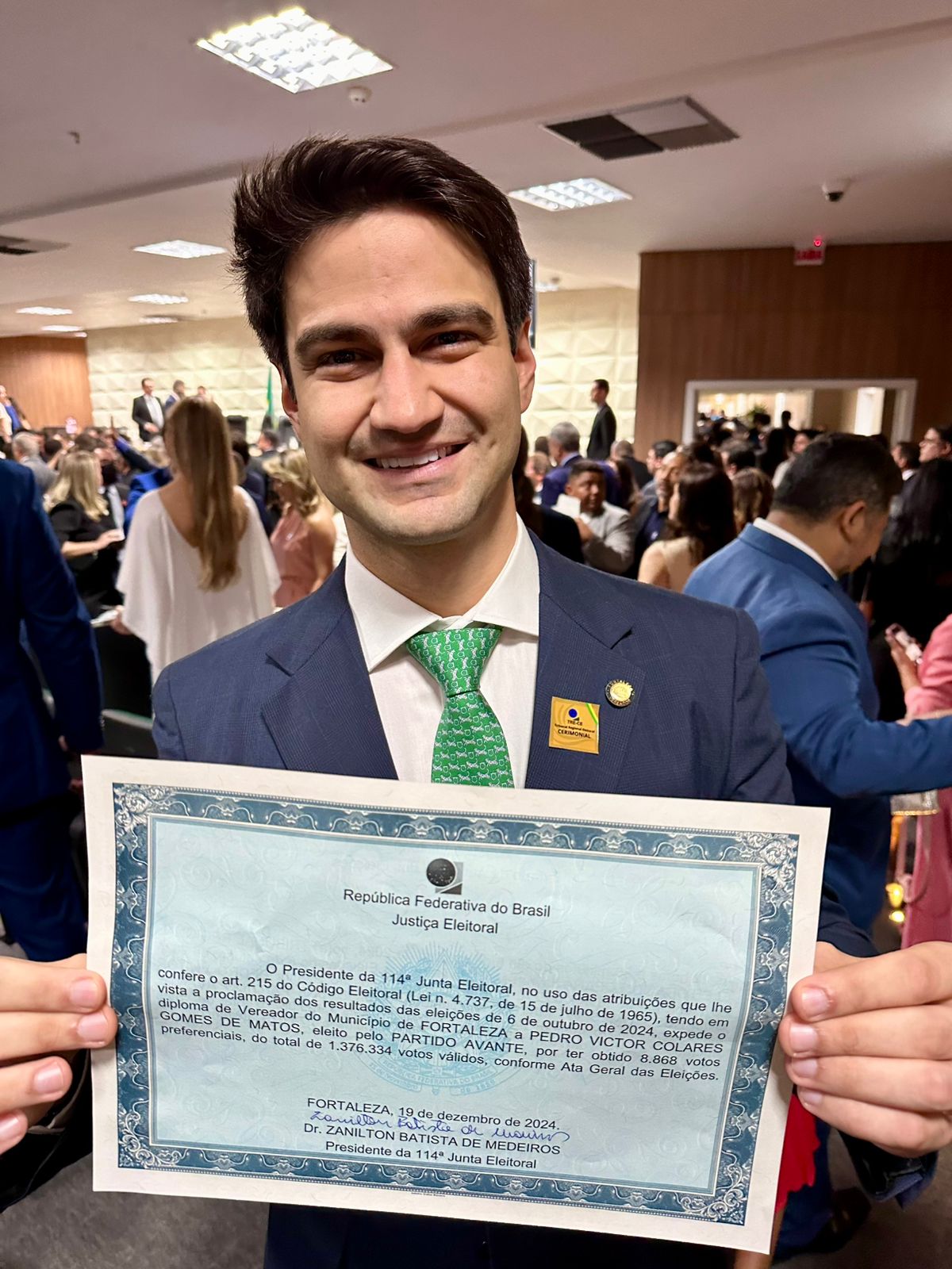 O vereador Pedro Matos foi diplomado para o mandato 2025 – 2028 na solenidade ocorrida nesta quinta-feira, 19 de dezembro, no Tribunal Regional Eleitoral do Ceará (TRE-CE).